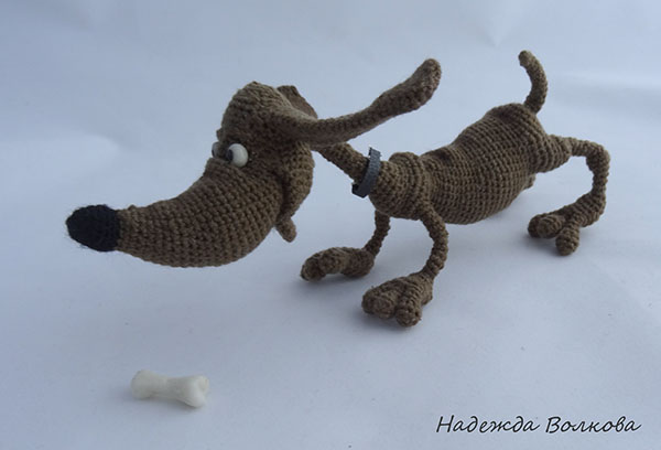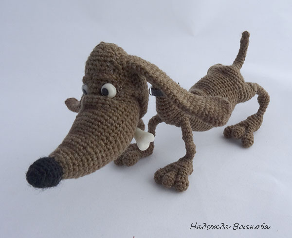 Амигуруми (вязаные игрушки)Глядя на эту собачку. просто не возможно не улыбнутся) Связана псинка по описанию Татьяны Kanareyka из раздвоенного Джинса, крючком 1.25. Армирована проволочным каркасом, благодаря чему отлично гнется и принимает просто невозможные позы. Ростиком собачка не больше 10 см. в длину 20,зависит от позы.