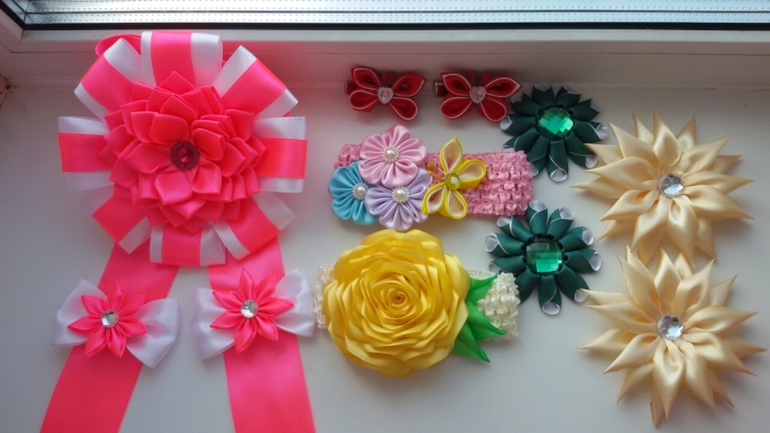Цветы из ткани и форма. Канзаши. Украшения для волос.Давно хотела попробовать и вот что получилось ))