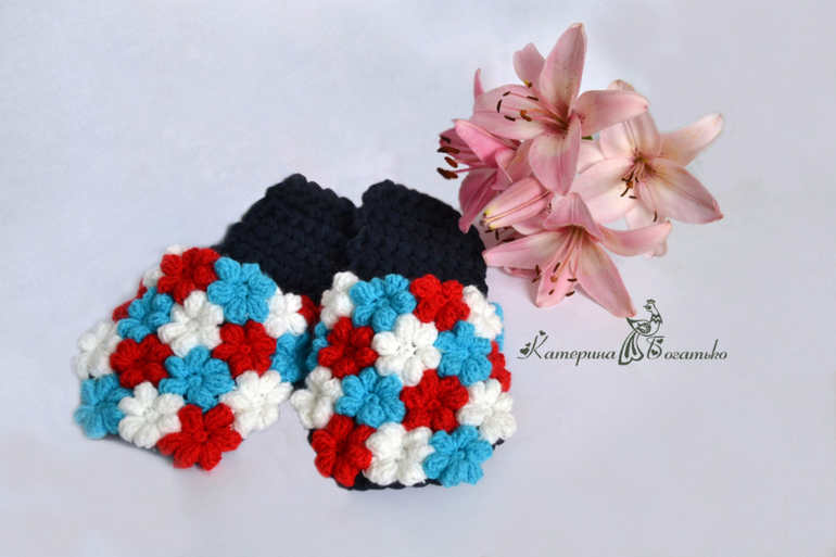 Ух ты! Очень понравились тапочки Вашей мамочки! А не поделитесь ли схемой? Не самих цветочков, с ними все понятно, а как все это в тапочку соединить? И про подошву - из чего она?