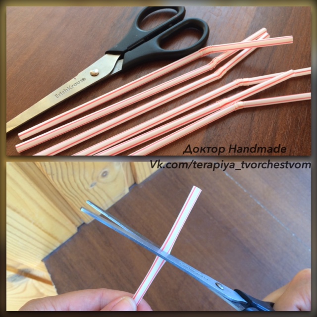 Соломинки нарежьте на одинаковые отрезки (3-4 см).
