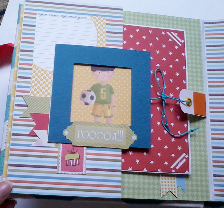Вот такой альбомчик получился из бумаги от Скрапмир "Мальчики такие мальчики". Как только ее увидела была очень вдохновлена яркой цветовой гаммой.
