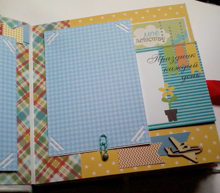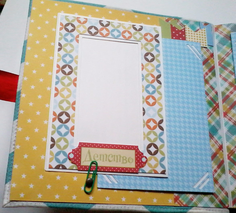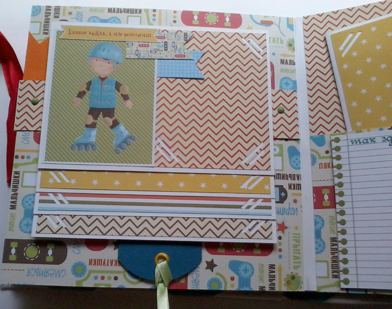 СкрапбукингВот такой альбомчик получился из бумаги от Скрапмир "Мальчики такие мальчики". Как только ее увидела была очень вдохновлена яркой цветовой гаммой.