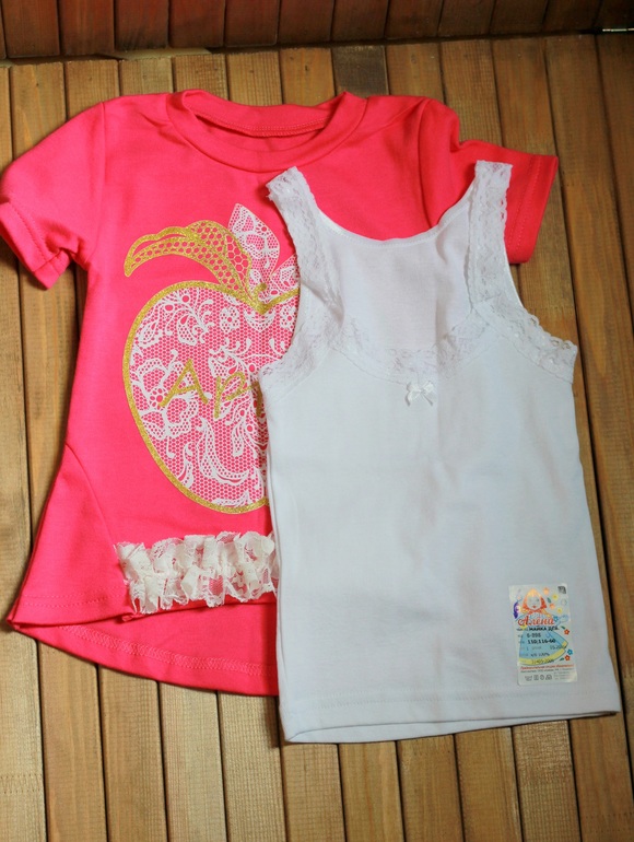 А это обновки для нашей принцессы (это она так сама себя величает)) Нади. Малиновую тунику уже обновили вчера, благо погода хорошая. Татьяна, с размером угадала на 100%!!