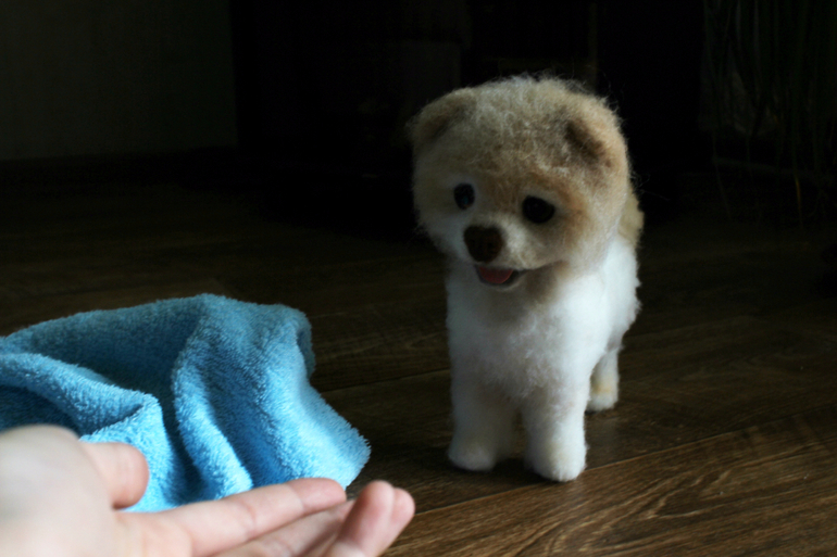 Доброй ночи)) Нет , что вы:D Щенок свалян из (войлока) шерсти и является интерьерной игрушкой)) Спасибо)))