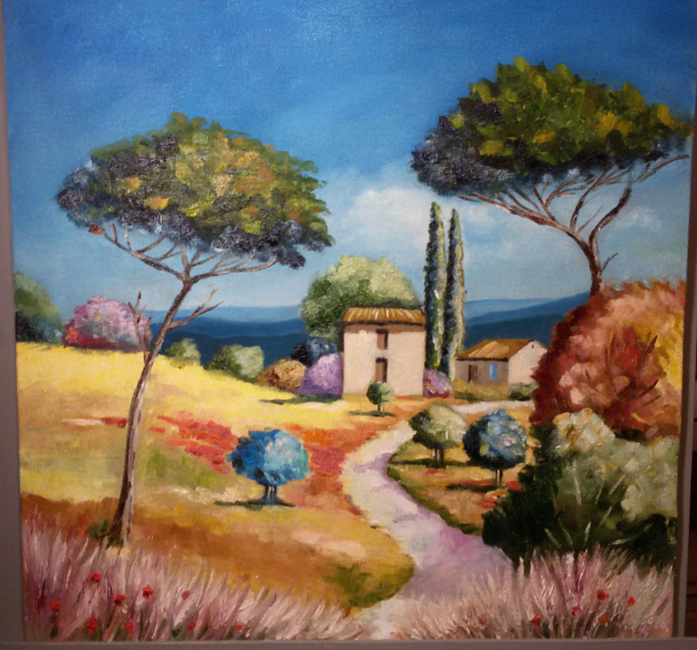 Нашла в интернете оригинал. Ну ничуть у тебя не хуже! А картины у этого художника шикарные, конечно! Такое буйство красок.