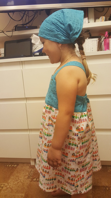 Шитье одежды, выкройки, ремонт одежды, шторы, швейные машины (уже приобретенные)Первый раз шью сарафан)) да и вообще с одеждой до этого не связывалась, один раз шорты шила. Но когда дома нашёлся шикарный кусочек ткани с матрешками, я не удержалась. Надеюсь и на следующий год пойдёт. Хотелось юбку пошире, но ткани было впритык))
