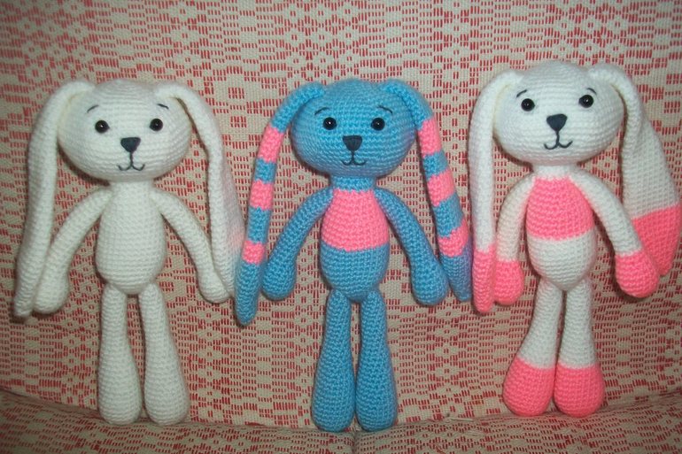 Амигуруми (вязаные игрушки)Связались новые зайки - разноцветные. Как говорится, на любой вкус и цвет