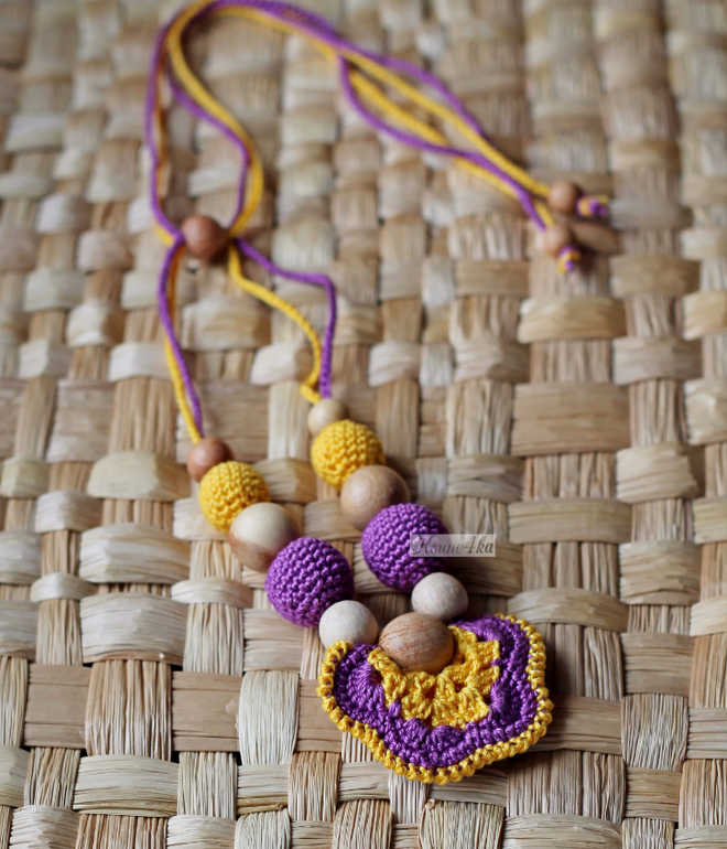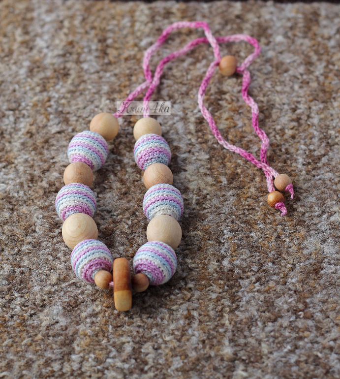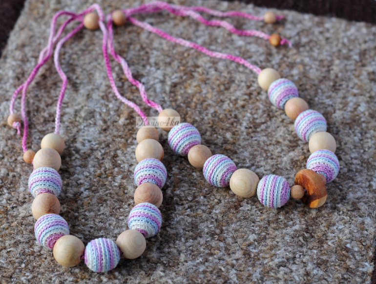 Длину бус можно регулировать, что позволяет носить их как мамам, так и малышам. Также можно подвешивать их на кроватку или коляску.