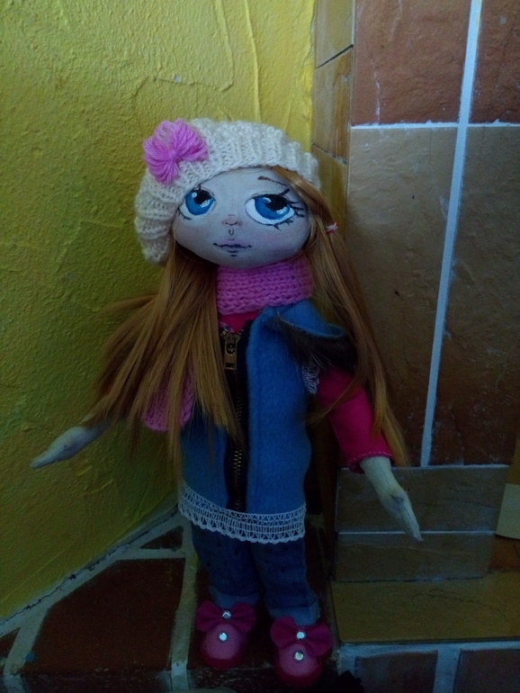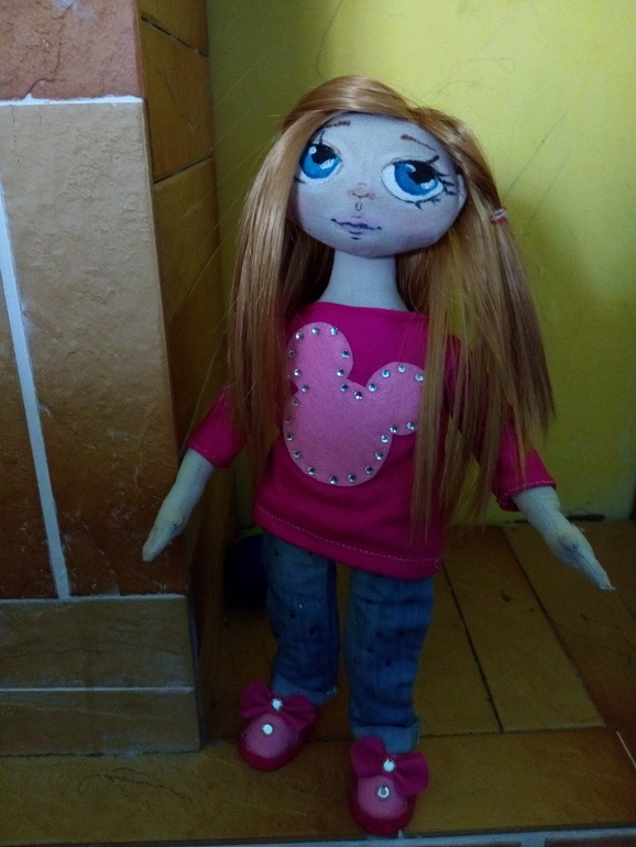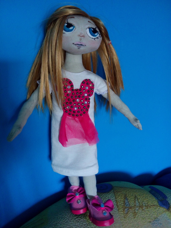 Это моя третья работа,очень мне нравится их делать,столько тепла,любви при выполнении вкладывают,очень нравится эффект, что из кусочка ткани и красок появляется вот такая маленькая девочка...