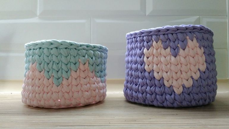 Вязание крючком (РАБОТЫ И СХЕМЫ)Что скажите? Корзинки для мелочей разных. Мне кажется очень удобными и модными. В маленьких хранить заколки дочкины удобно