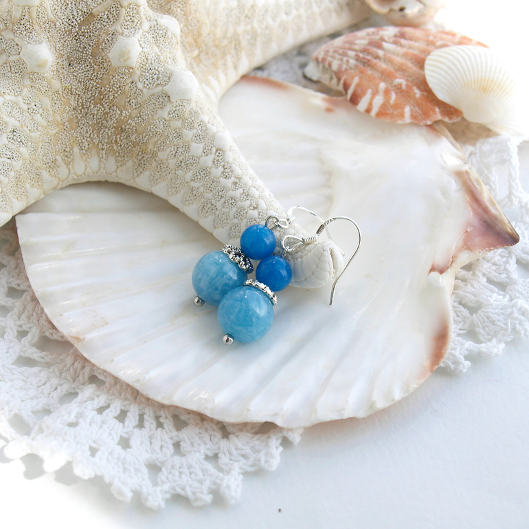 Лично я очень люблю голубой цвет и все его оттенки. На этот раз собрала вот такой комплект из тонированного голубого агата.