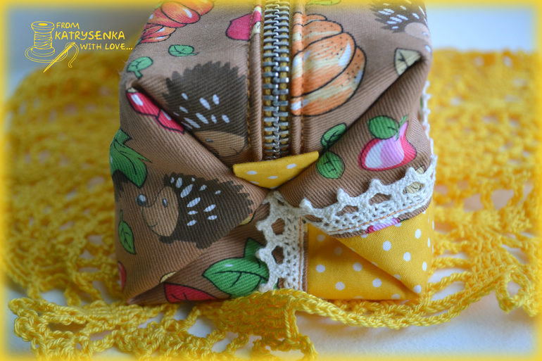 Уже больше года лежал у меня отрезик этой замечательной тканюшки с ёжиками однозначно купила в порыве острого хомякоза и всё никак я не могла придумать ей применение, крутила-вертела иииии.... бац пришел ответ - а сошью-ка я осеннюю косметичечку-кирпичек - осень-то не за горами - пора запасаться :))