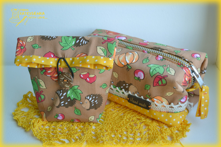 Косметичка-кирпичек и мешочек-кошелёчек "Ёжики"