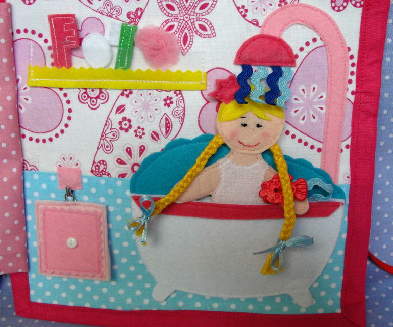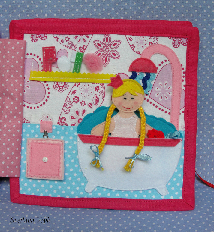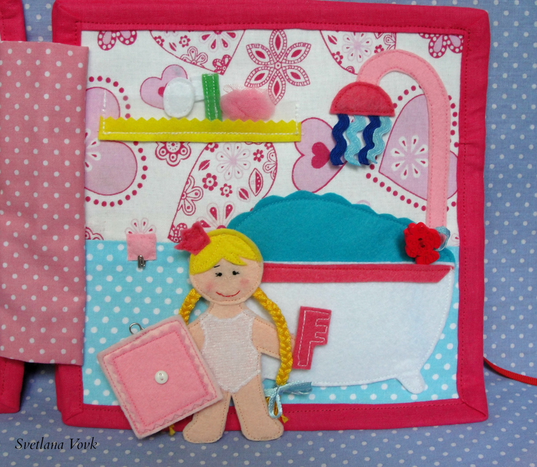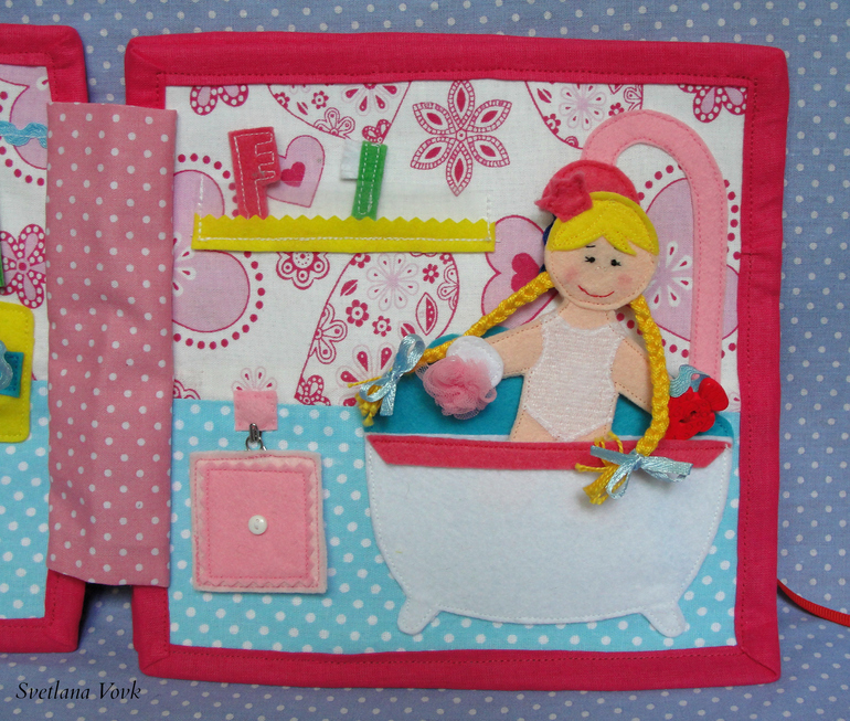 В книжке 6 страничек - две обложки, ванная и спальня.