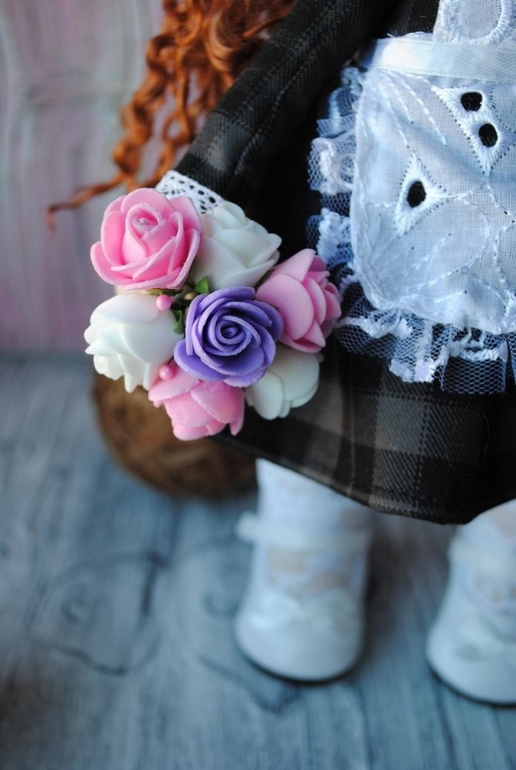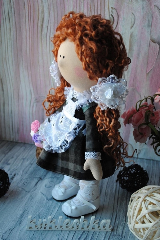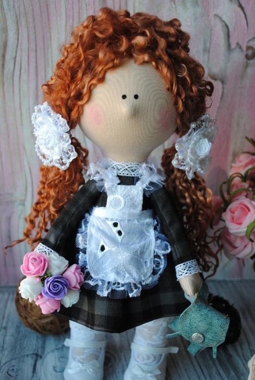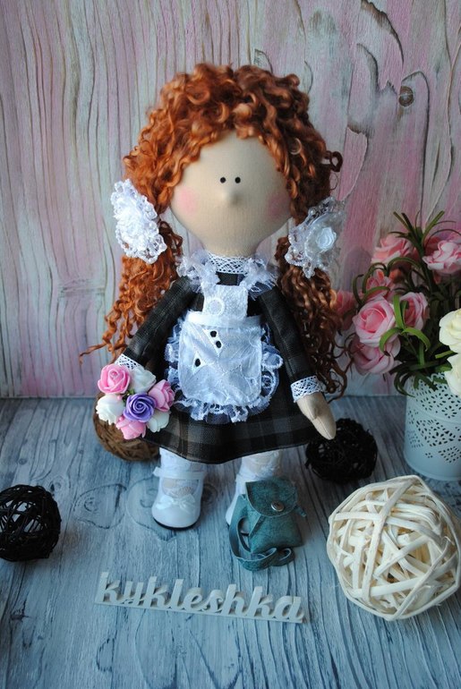 Кукольный мир - человекоподобные куклыК первому сентября сшила такую малышку. Девочка одета в форму(не снимается), фартучек(съемный), туфельки, гольфики. С собой у нее букет цветов для учительницы и рюкзачек. Рюкзак сшила сама из натуральной кожи. Его можно раскрыть, внутри лежит настоящий кукольный дневник))) Волосы сделаны из овечьих кудрей. Убраны в хвостики, но их можно распустить. Резиночки тоже ручной работы(не мои, другого мастера). Больше фото- 8шт. под катом.