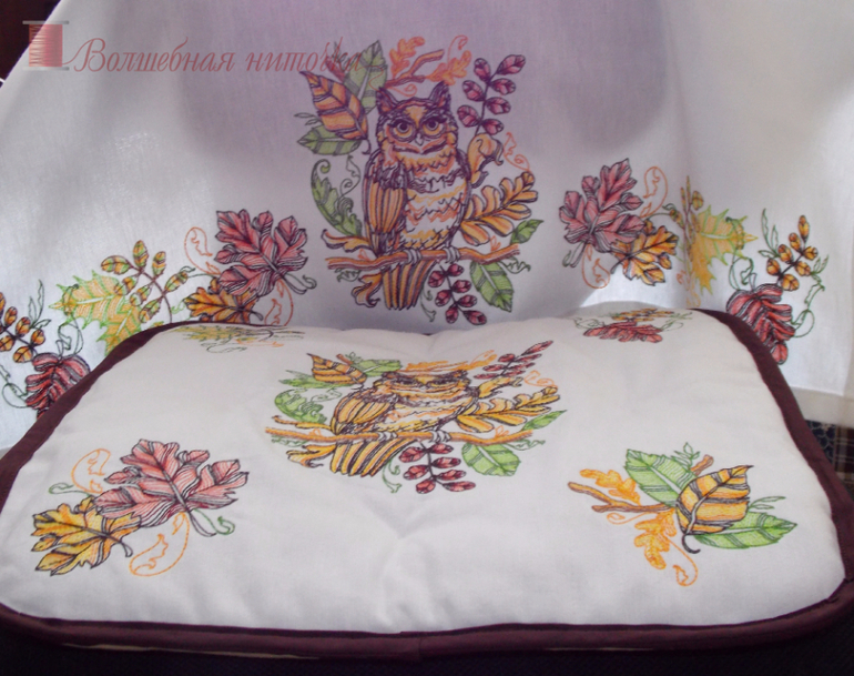 Вышивка картин. Крестиком, гладью, бисером, стразами, лентами, схемы по вышивкам, процессыМуж всё-таки построил маленькую баню! Один! От и до! И я решила внести свой небольшой вклад.) Сделала небольшую занавеску из плотного хлопка и подушку-сиденье на стул. Это в предбанник. Потом ещё там длинная лавка будет и я ещё что-нибудь придумаю!)