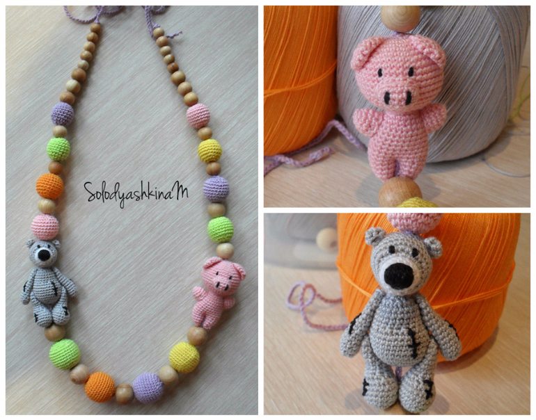 Бижутерия для слингомам. Слингобусы. Грызунки.Связались новые слингобусы. Наконец-то не с одной а с двумя игрушками полноценными )))) давно хотела связать с двумя для своей "коллекции". Теперь у мишки появилась компания в виде порасика ))))