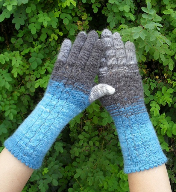 Машинная вязка (РАБОТЫ И СХЕМЫ)Хочу с Вами поделиться! Очень понравилась ниточка " Ангора Батик"-так интересно она ложится! Вот перчатки из такой пряжи! Связаны на двух фантурах, без швов-по кругу.