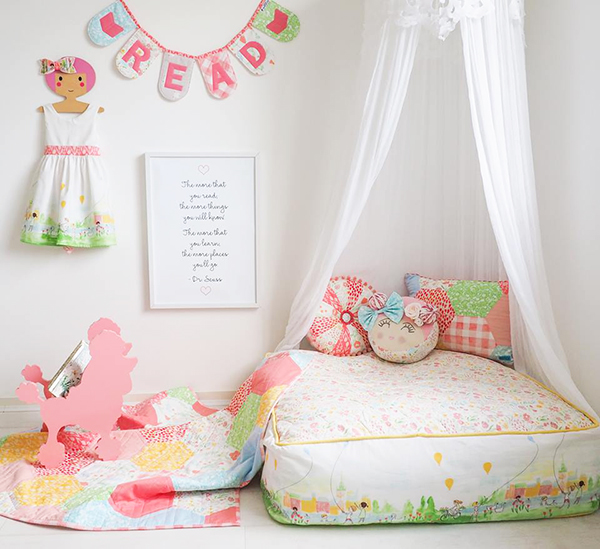 ух ты...как красиво! подушка с вышивкой - обалденная! А вот эта ткань с мелкими кусочками на подушке - это сами сшивали квадратики милипусечные или ткань с таким рисунком? Покрывало красивое получается, тоже захотелось дочке в таком стиле оформить комнату
