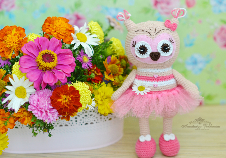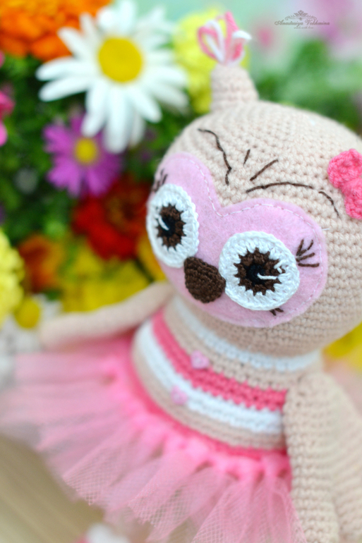 Амигуруми (вязаные игрушки)Милашка получилась, наглядеться не могу) Рост 24 см, ниточки ализе коттон голд, юбочка из фатина. Связана по мк Дианы Пацкун. Под катом еще несколько фото