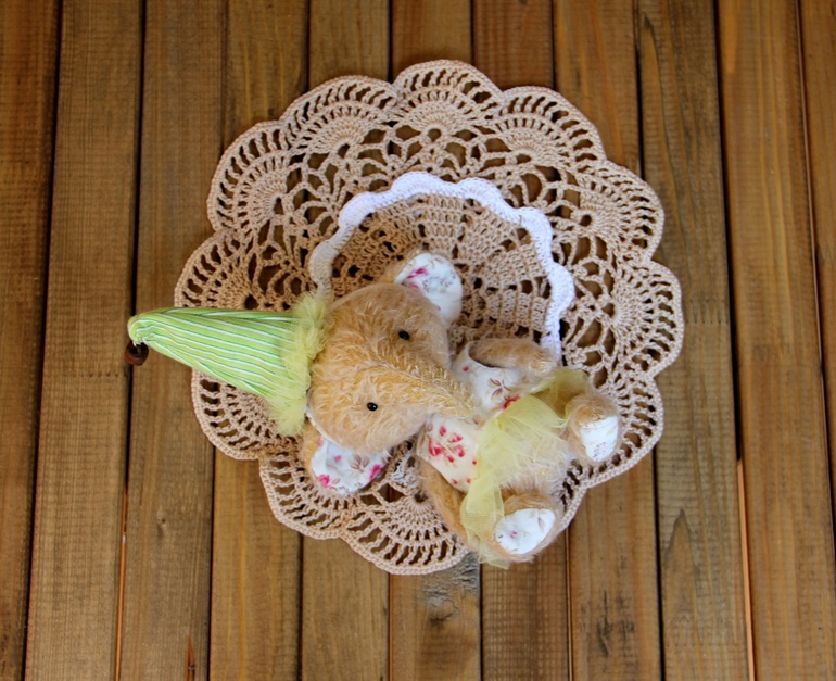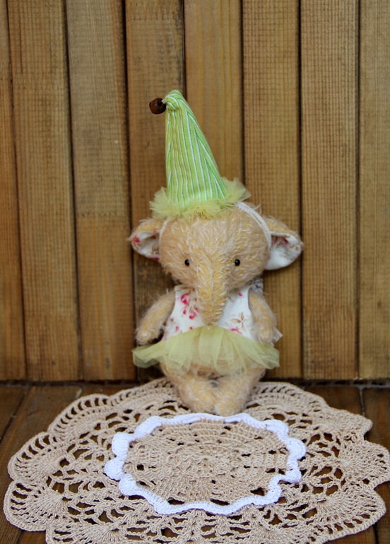 Тедди: мишки и их друзья.Аришу шила долго, ее появление было растянуто во времени. Выкройку сделала еще весной, а шила понемногу все лето почти. И наконец она готова и одета, маленькая слоняша.