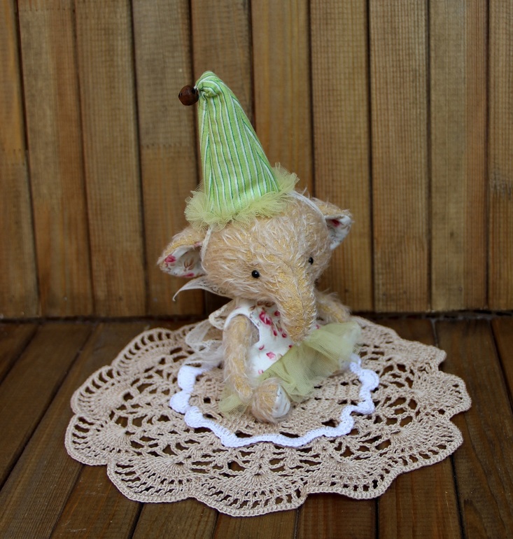 Голова и лапки у слоняши подвижны на шплинтах. Набита малышка опилками.