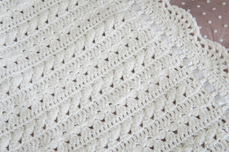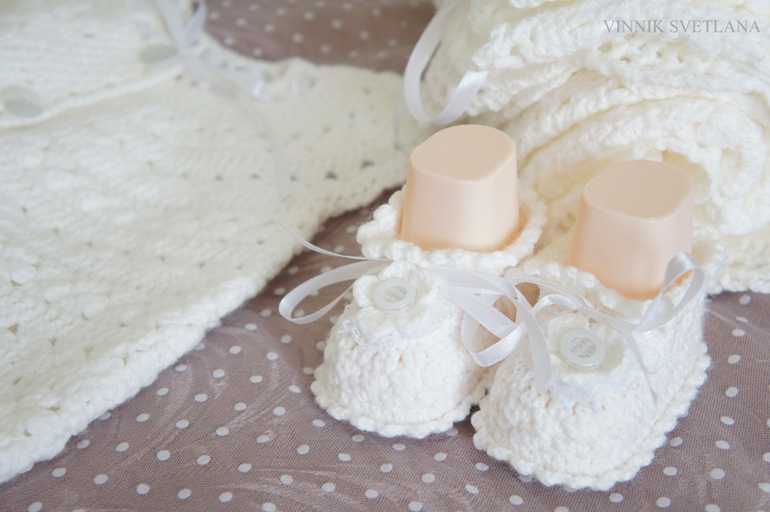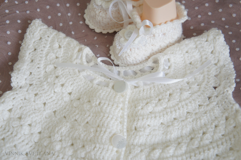 Вязание крючком (РАБОТЫ И СХЕМЫ)Всем доброго дня!!!!!!!! Наконец-то я его дооформила!!!!!!!!!Сначала не хватило ниток, потом не найти пуговок, потом отпуск, а сейчас аномальная для Урала жара (под 40 в тени). Плавится всё: от асфальта до......... Но о приятном. Приятельница родила девочку, долгожданную. Сначала думала подарить плед, а потом всё вылилось в комплект. Под "катом" много фото