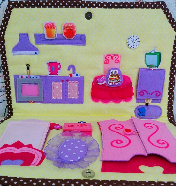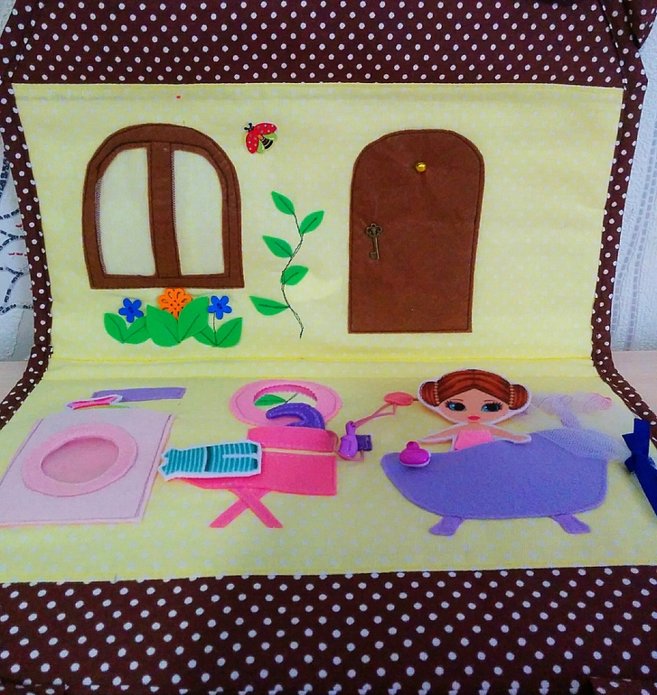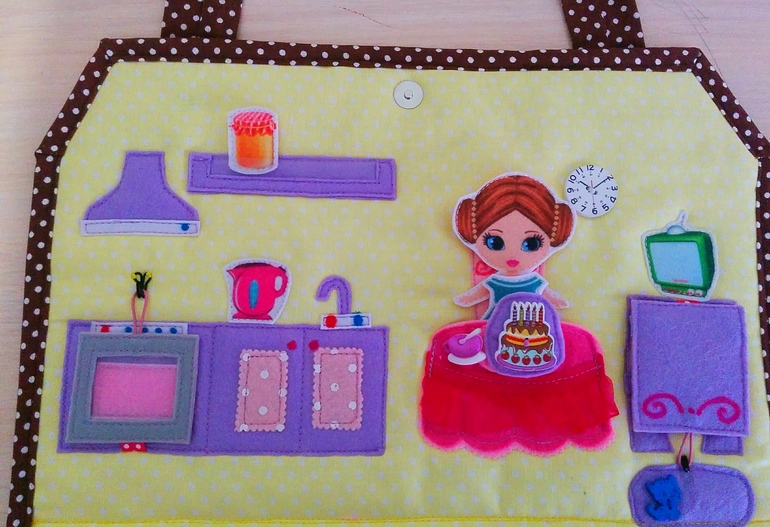 Развивающие игрушкиВсем привет! Предлагаю к просмотру мою новую работу: Сумочка Кукольный домик. Размер в сложенном виде 35*25 см, дополнительно крепится на магнитную кнопку. Разложив сумочку очень удобно играть с куколкой. Приятного просмотра!далее много фото