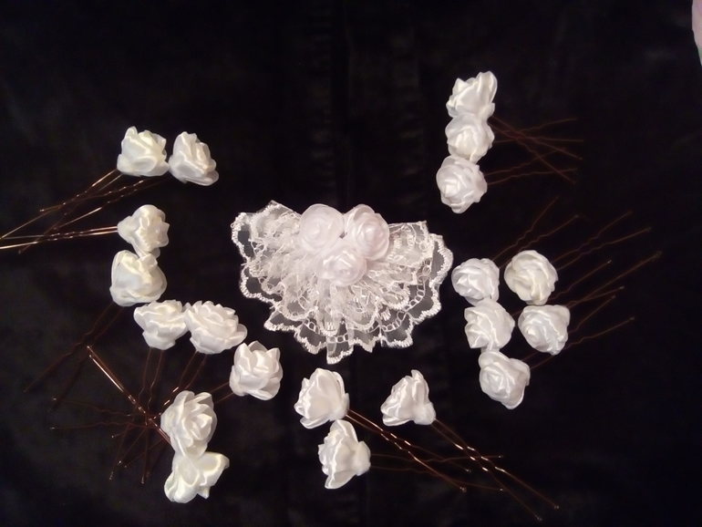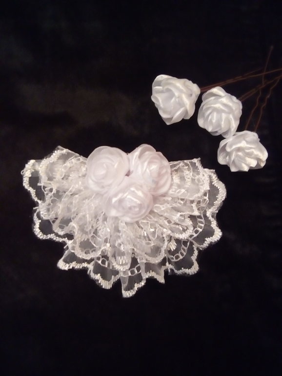 К дочкиному сарафану только маленькие хвосты подходят. Я комплект с шпильками сделала, как и хотела на 1 сентября) Как тебе?