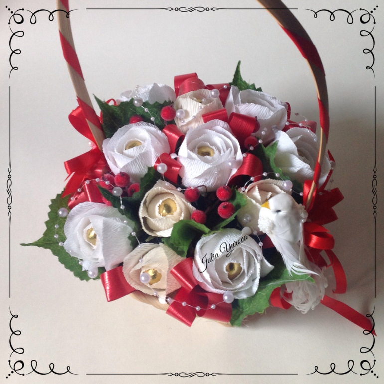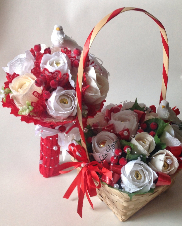 Букет и корзина - комплект. Так же для поздравления на свадьбе