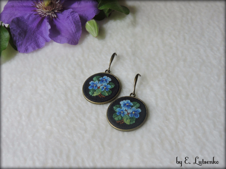 Бижутерия для слингомам. Слингобусы. Грызунки.Продолжаю коллекцию со старинной вышивкой 19 века! На этот раз комплект с голубыми фиалками: браслет, кулон и серьги! Много фото...