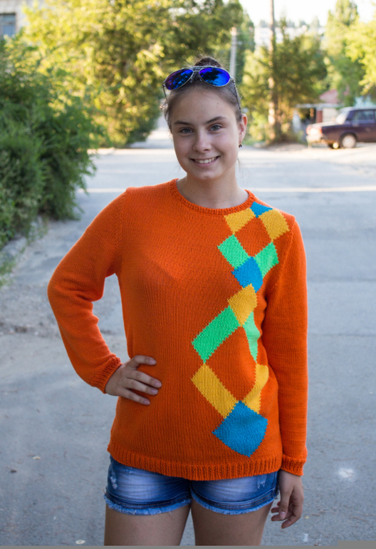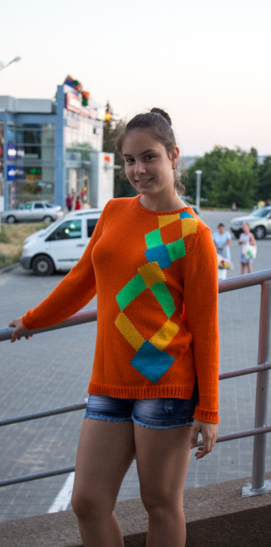 Жень свитерок на машине или руками? схемкой не поделишься? тоже ест остаточки клубочков надо бы пристроить