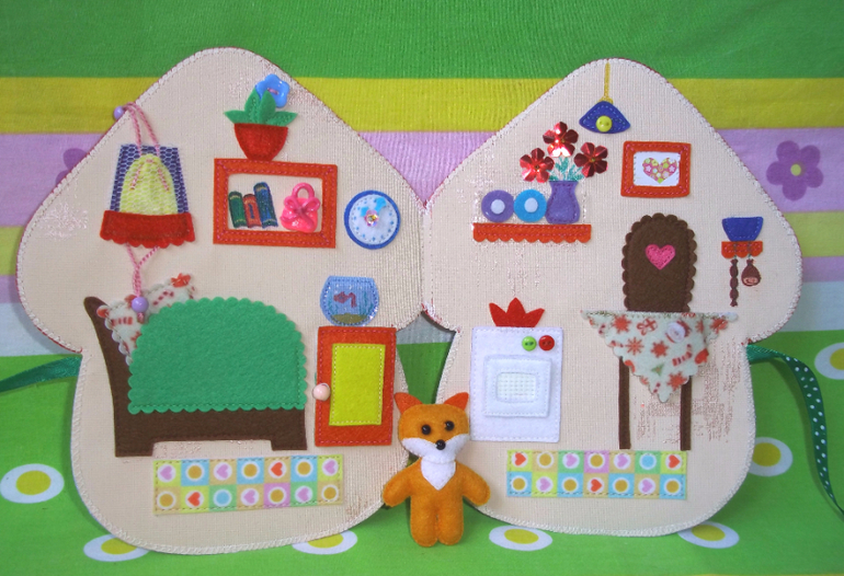 Развивающие игрушкиСегодня еще покажу новенькие работы, на этот раз книжка- домик для маленькой именинницы Машули (дочуркиной подружки) и естественно не могла обделить вниманием свое чадо