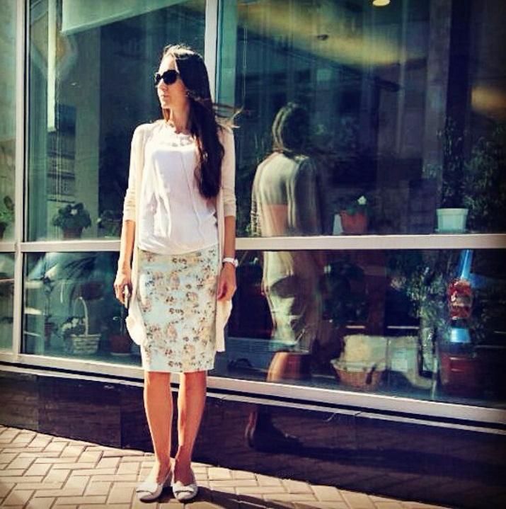 Для себя сшила просто-юбку на обтачке из тоненькой хорошенькой джинсы с цветочками)