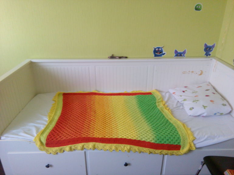 Вязание спицамиПоказываю очередной плед узором " соты" с градиентами....получилось очень ярко