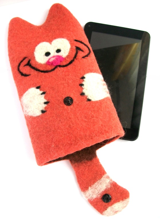 Фелтинг (валяние шерсти)Свалялся для планшета чехольчик по мотивам мультика "Гафилд".