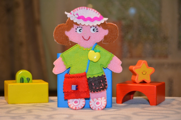 Развивающая кукла с одеждой из фетра. Теперь с сумочкой :)