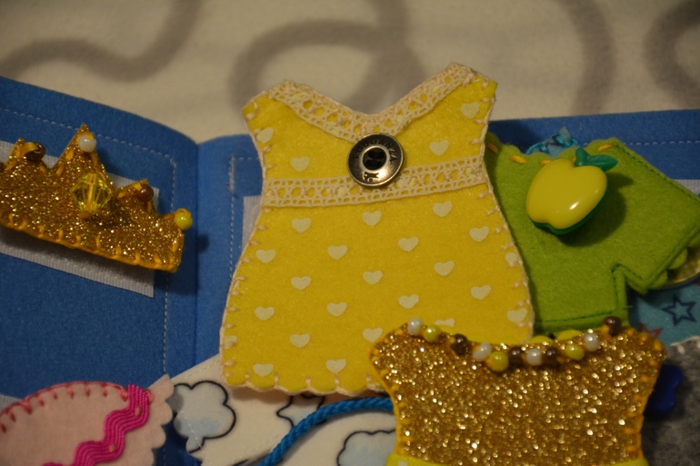 Множество пуговиц, липучек, фактура швов и самого фетра - великолепная тренировка мелкой моторики. Все пришито крепко-накрепко.
