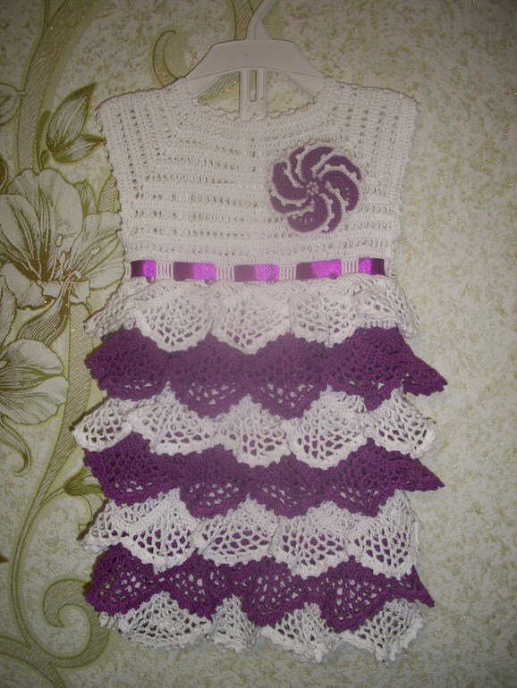 Платье на малышку 6 месяцев из Пехорки "Ажурная". Ушло около 170 грамм, крючки 1,5, 1,75 и 2.