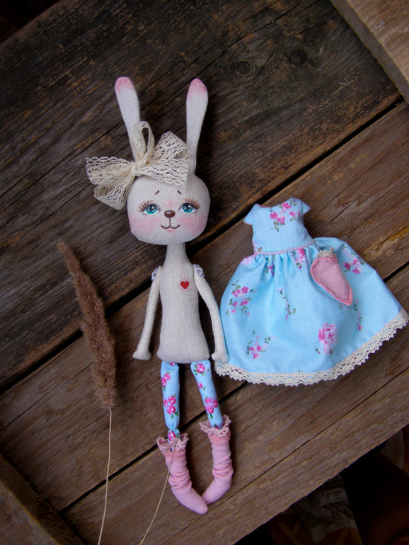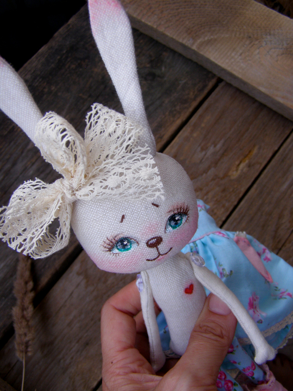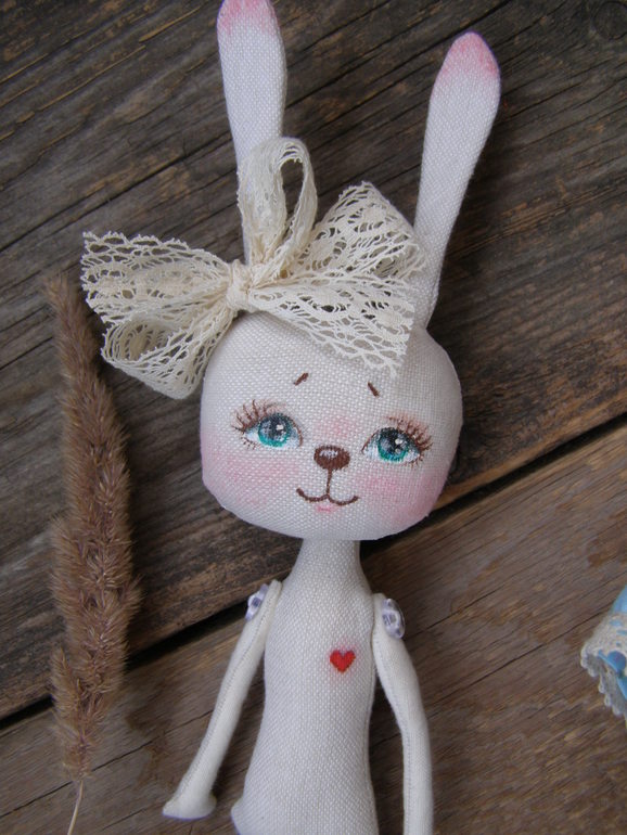 Игрушечный мир - животныеЗаечка снова.. Сшита из льна и хлопка. Платьице и чулочки снимаются. Бантик -хлопковое кружево. Личико расписано акрилом, температурно закреплено. Деликатно тонировано маслом. На платьице кармашек в виде сердечка. Ростик с ушками 30см. Далее более пяти фото подробнее).