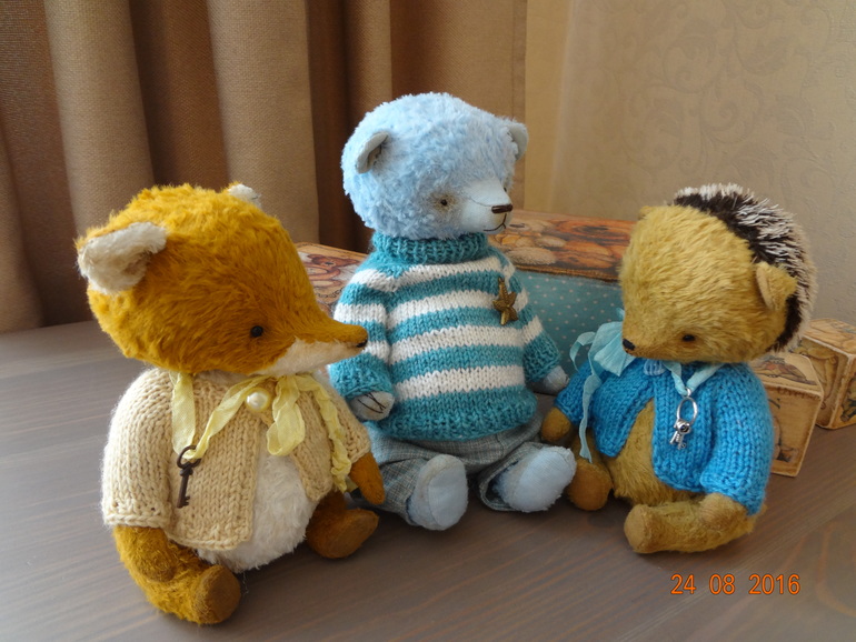 Тедди: мишки и их друзья.Друзья ежик тедди Сеня и лисенок тедди Веня. Сшиты полностью вручную. Ежик ростиком 17см,а лисенок 16см. Плотно набиты опилочаками,утяжеленны стальным гранулятом,приятно тяжеленькие. На обоих зверятах одеты кофточки,все-таки осень приближается))). Вот такие милые и забавные друзья тедди получились))). Более 5 фото под катом.