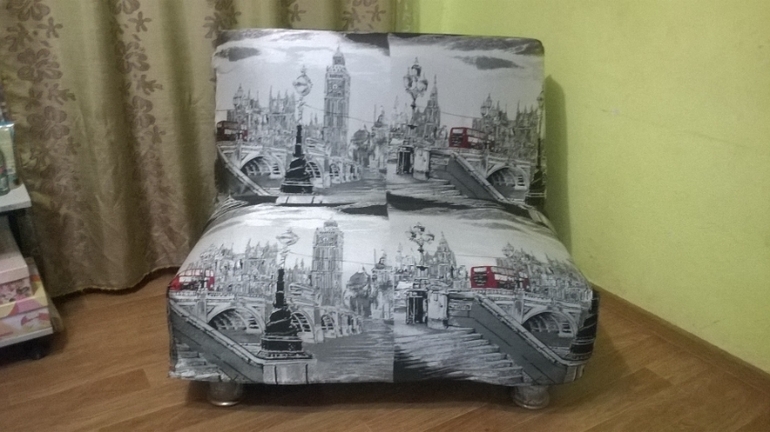 Шитье одежды, выкройки, ремонт одежды, шторы, швейные машины (уже приобретенные)Пошился сегодня за пару часиков чехол для такого маленького диванчика. Диван на работу, тематика не случайна, школа английского. В общем, вот: