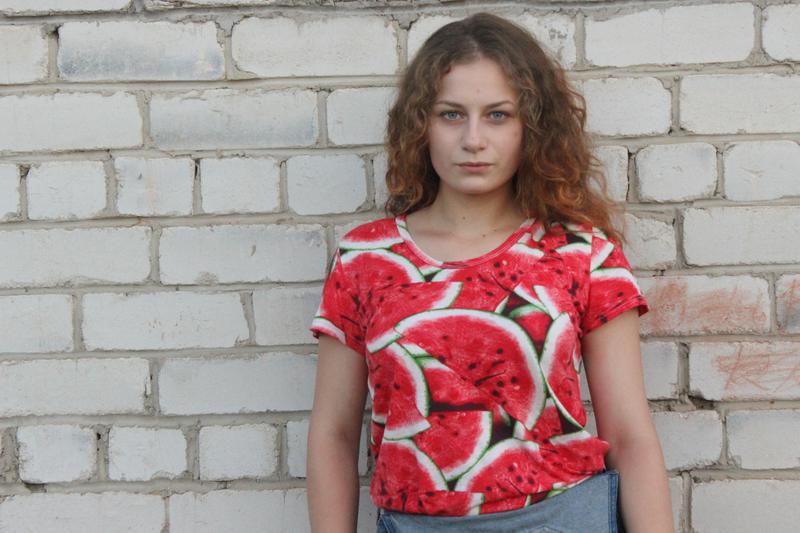 Сестрёнка, младшенькая моя. Для неё сшилась футболочка с арбузами:)