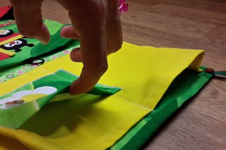 Нижний кармашек на магнитной кнопке, там мы храним спортивную форму (у нас это шортики и футболка).