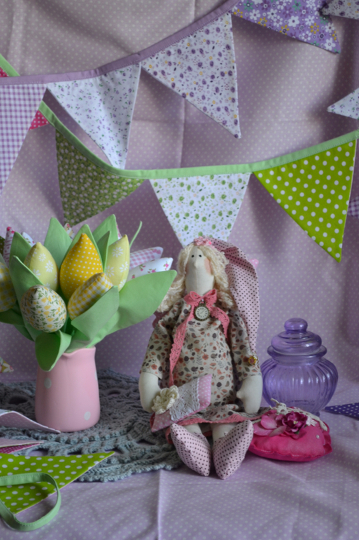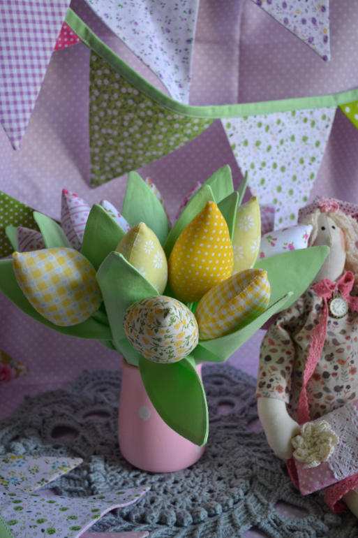 Сплошная милота!!! Обожаю флажки - они создают праздник и уют в комнатке))) тюльпаны -неувядайки классные, сплюшка няшный)))