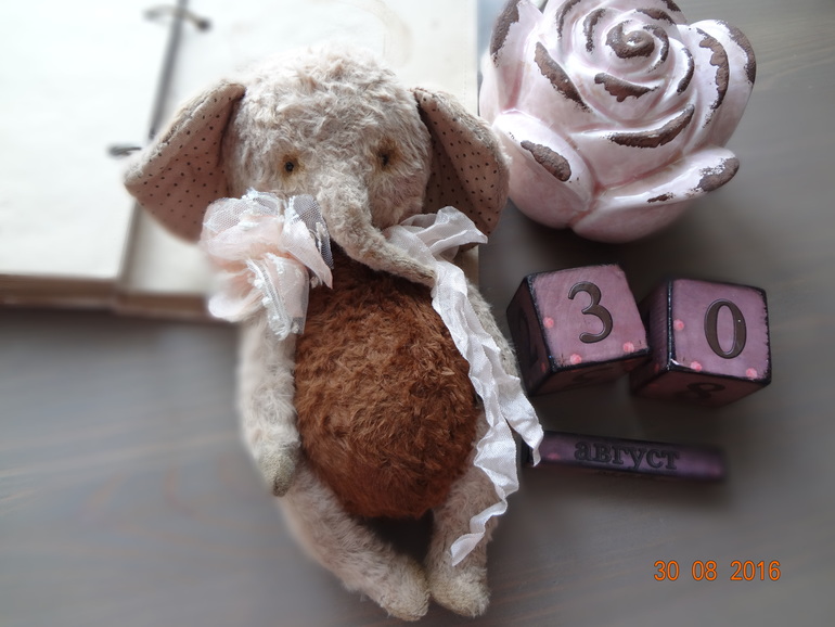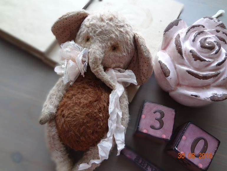 Тедди: мишки и их друзья.Слоня тедди Грета милое и доброе создание. Сшита полностью вручную из вискозы двух оттенков,цвета шоколада и кофе с молоком. Шплинтовое крепление,голова покачивается,ручки и ножки подвижны. Набита плотненько опилочками и металлическим гранулятом,сидит уверенно,стоит с поддержкой. Украшена Грета цветком ручной работы и шебби лентой.