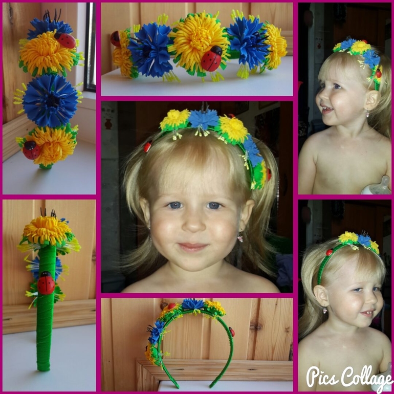 Супер-ободок! Прям представляю себе фотосессию: в деревне, на поле, с цветами в руках, рядом коза пасётся...ну и, конечно же, в этом ободке! Класс!