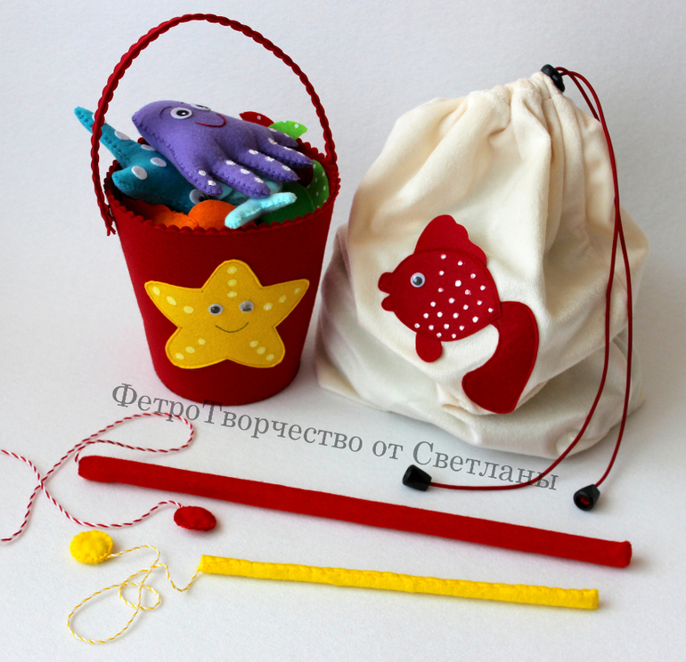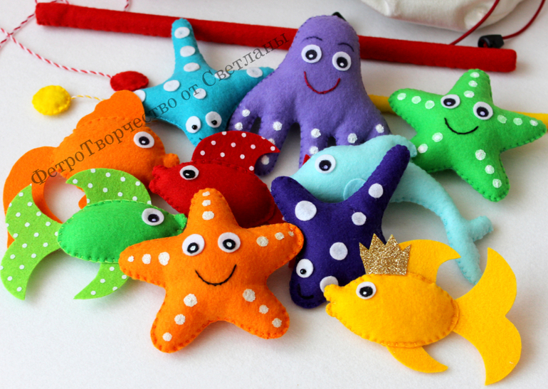 1. " Магнитная рыбалка ". Морские обитатели сшиты из мягкого корейского фетра толщиной 1 мм .