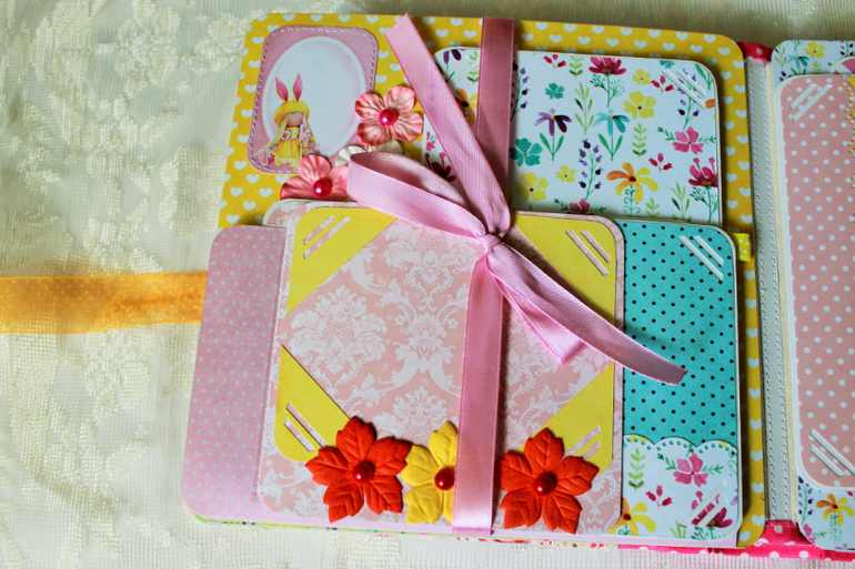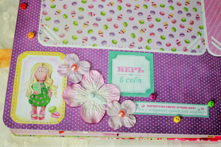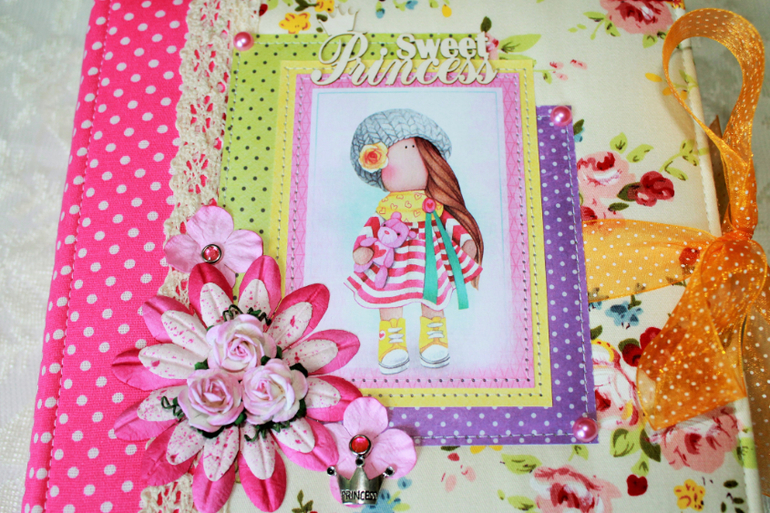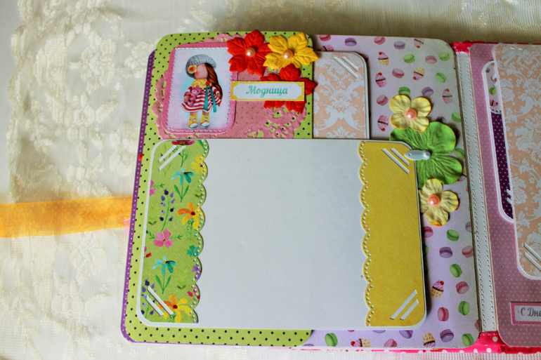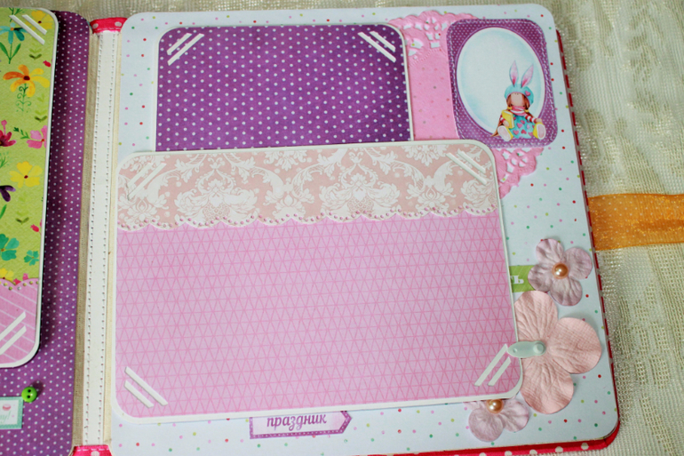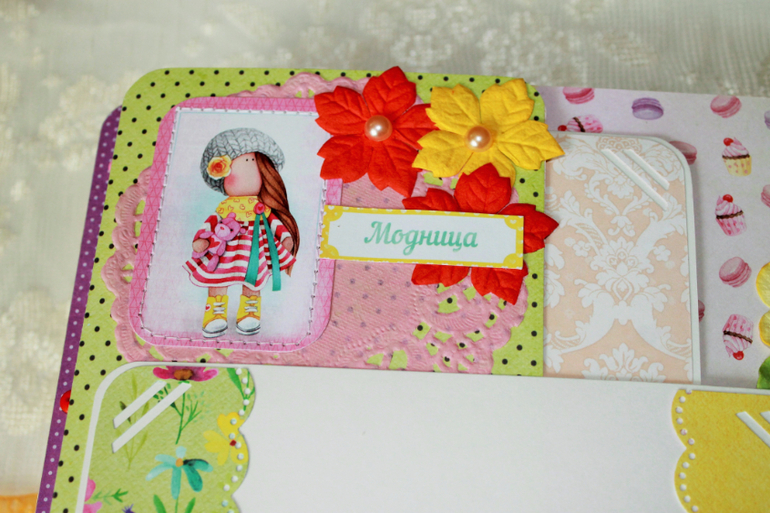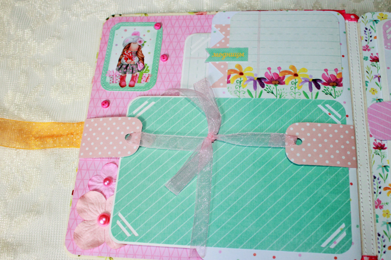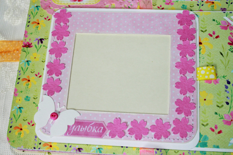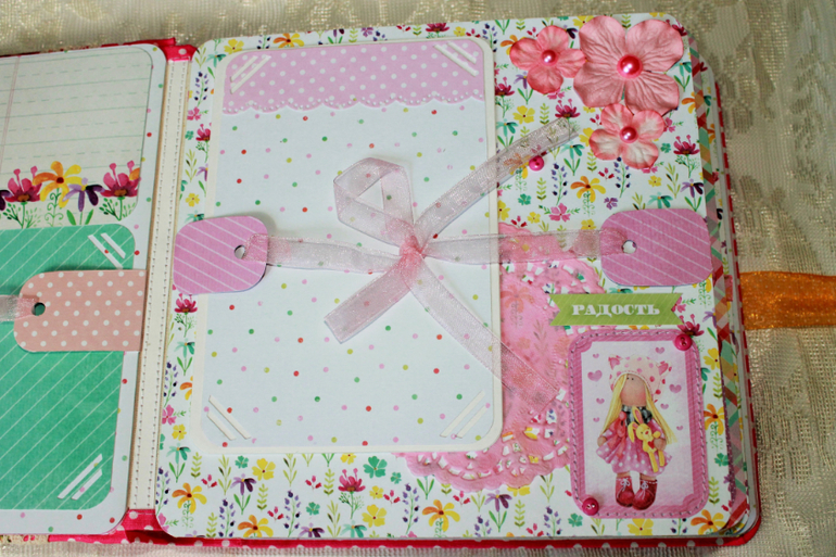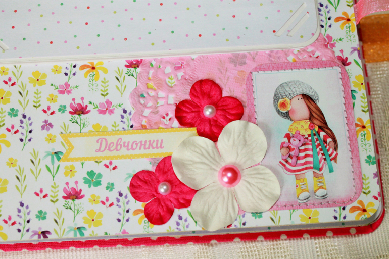 СкрапбукингПокорила меня бумага от СкрапМира "Sweet Girls", яркая, цветочная с куколками - большеножками... Альбом родился на одном дыхании. Размер 20*20 см, 5 разворотов... Вмещает более 50 фото + есть кармашек для дополнительных фото или записочек