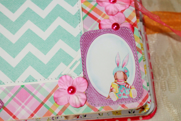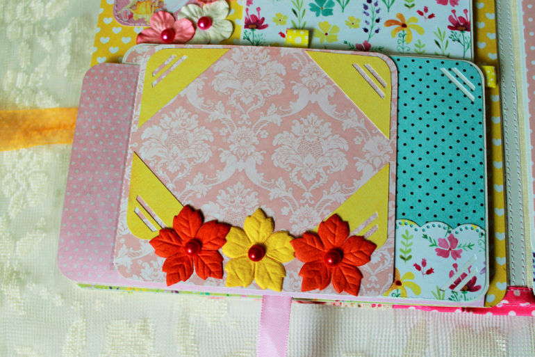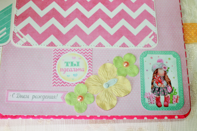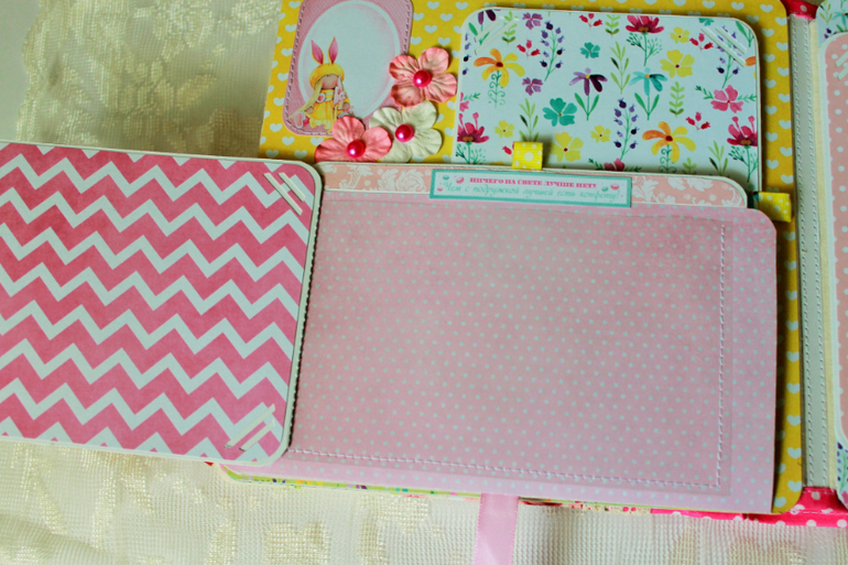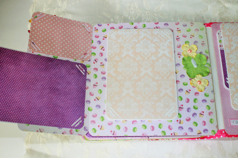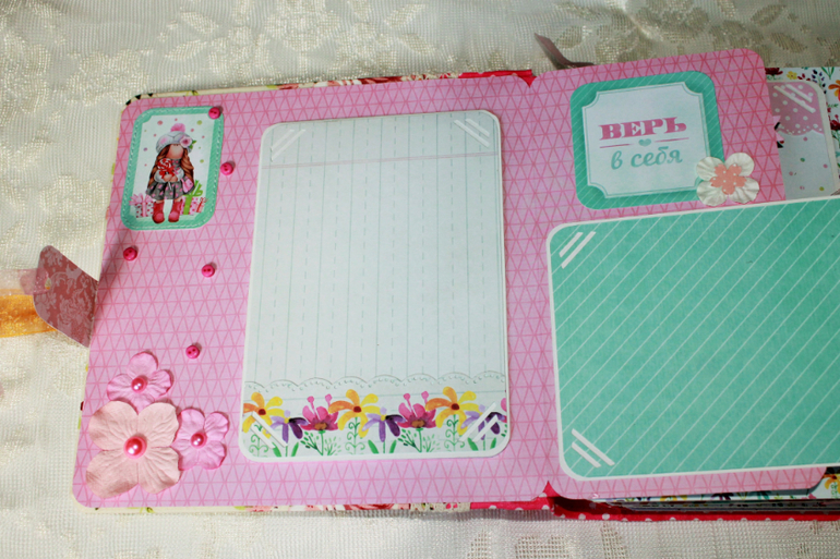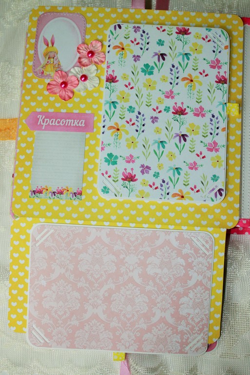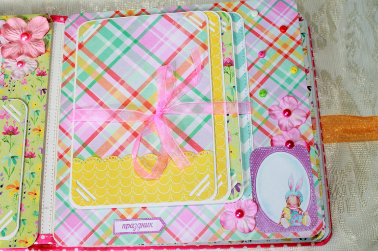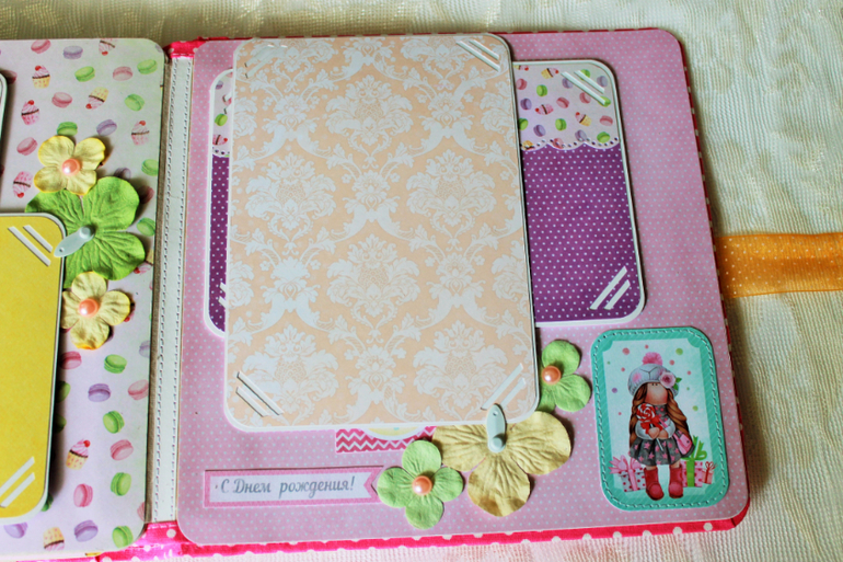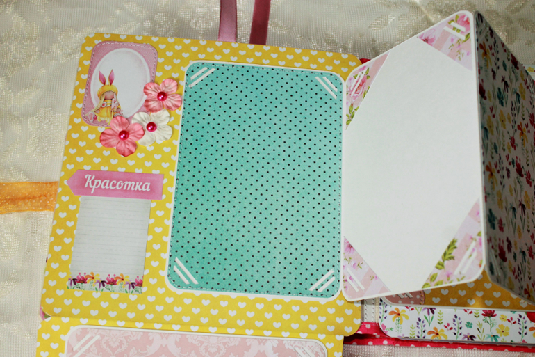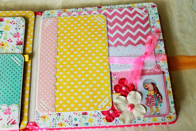СкрапбукингПокорила меня бумага от СкрапМира "Sweet Girls", яркая, цветочная с куколками - большеножками... Альбом родился на одном дыхании. Размер 20*20 см, 5 разворотов... Вмещает более 50 фото + есть кармашек для дополнительных фото или записочек